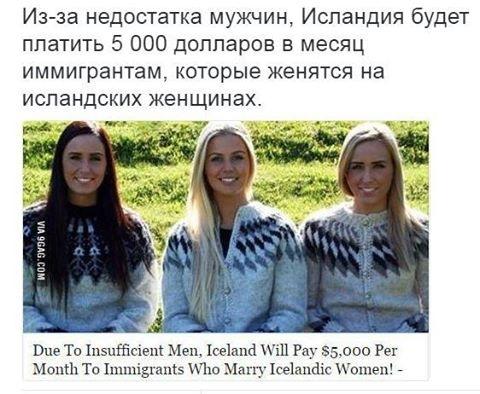 Это очередная наглейшая ложь путирастика: http://desinformacao.org/islandia-nao-vai-pagar-u-5mil-por-mes-para-quem-casar-com-uma-islandesa/