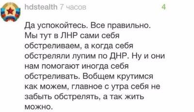 Странное дело, что на Донбассе местных жителей, т.е. украинских подданных нет или есть? если есть, то зачем киевская власть этих людей убивает, лишь потому-что люди думают иначе? При чем тут "ваша война". Плохому танцору всегда что-то мешает, так и у вашей власти. Вы, что могли бы подумать, что власть возьмет и скажет - да, идет гражданская война! Для нее это самоубийство. Посмотрите, что теперь пишут об Украине в штатах, во многих СМИ Европы. прошла эйфория, Украина медленно, но верно превращается в изгоя, нищающую страну с разваливающейся экономикой. Опять Россия виновата?