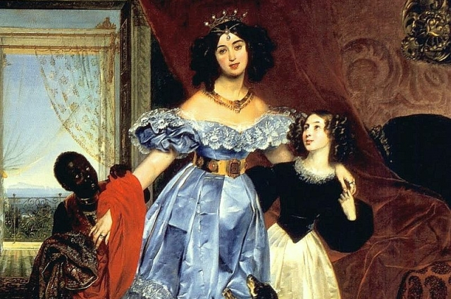 К.Брюллов.«Портрет Ю.П Самойловой с Джованиной Пачини и арапчонком». 1832—1834. Музей Хиллвуд, США.