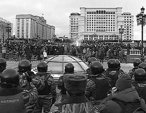 Дмитрий Медведев заявил, что милиция в случае беспорядков имеет право применять весь установленный законом набор средств, а также похвалил московских милиционеров за действия при подавлении беспорядков.