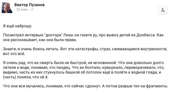 Да вот ещё... Плакало-болело... Как и не было всего этого ужаса на территории Мордора! Всем на всё и на всех пох@й, и на детей в том числе! Скорбят только о тех, по кому приказал скорбеть ТВ-ящик. А ТВ-ящик скорбит по тем, чью смерть можно обыграть и пропиарить в выгодном для Кремля свете.