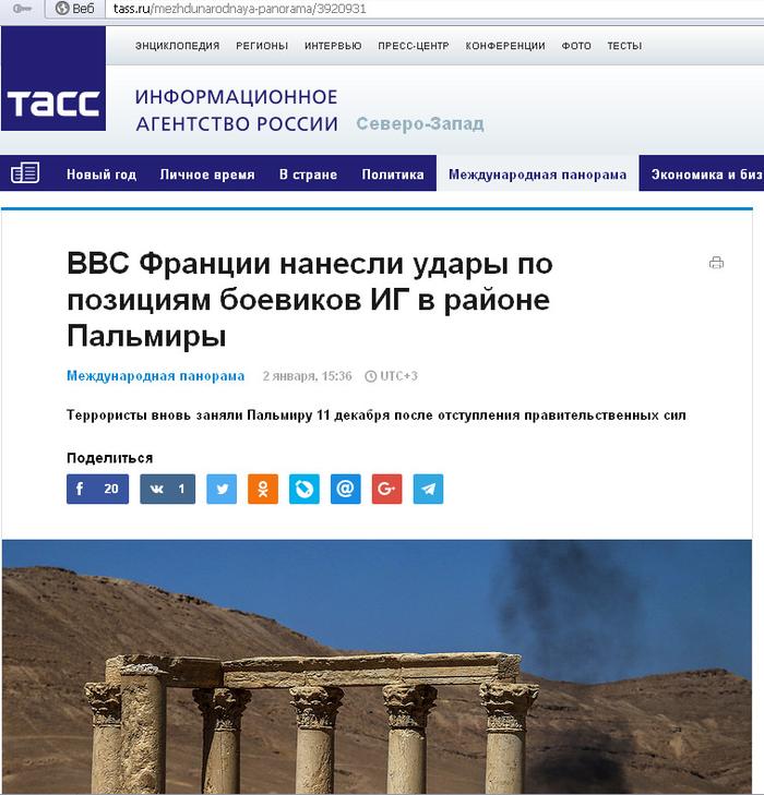Напомним, ВКС РФ уничтожили ряд целей ИГИЛ* под Пальмирой перед новым годом.
