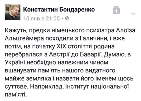 ...вот тут человек предлагает назвать Институт национальной памяти именем Альцгеймера, т.к де его предки были выходцами с Галичины. (с)