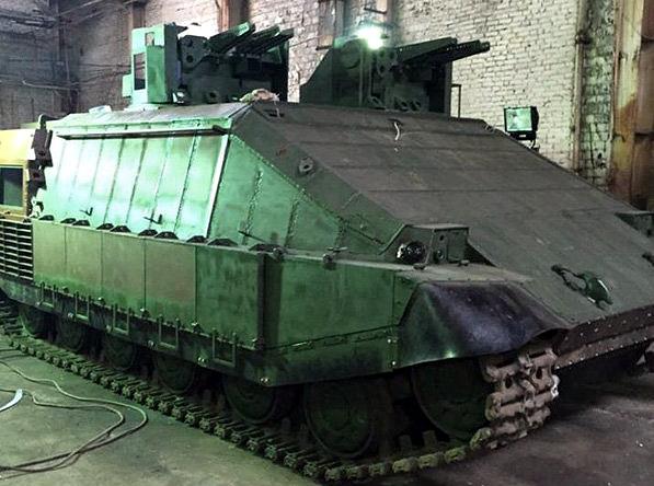 "Это боевая машина поддержки танков, аналог российской БМПТ, но ее защищенность выше. Машина по классу защиты превосходит практически любой танк мира, сравнима с "Абрамсом" и "Меркавой". Это инновационный танк. Оптика фактически отсутствует, вместо нее, видеокамеры, экраны и сенсоры. Видимость фактически 360 градусов для командира и мехвода. Имеется тепловизор. Электронную начинку пока еще не поставили, ждем деньги. Двумя боевыми модулями управляют два оператора, каждый из которых отвечает за сектор 180 градусов. В боевых модулях установлены спаренные авиационные пушки ГШ-23-2, а также по 1 пулемету ПКТ. На каждом модуле установлены по 3 дымовых гранатомета. Есть на модулях и по 3 мо...