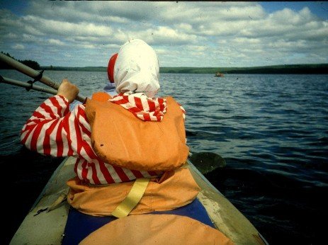 Итак, на этот раз выбрано было северное Прионежье. Приехав поездом в город Кондопогу, мы высадились прямо на берегу озера Сандал. Собрав байдарки и упаковав груз, мы отправились в путешествие. Всего было три смешанных по возрасту экипажа, мне было 42, дочке 18.