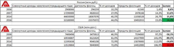 Это потому что там банки дают пиндосам кредиты с почти нулевыми процентами. А в РФ такие дерут проценты, что почти все население находится в долговой жопе.