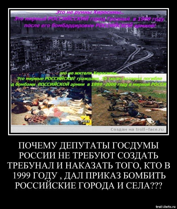 А теперь скажи, людей в Одессе и расстрел мирных жителей Донбасса из арты и с самолётов - это что, месть за Чечню?