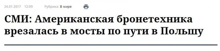 "Американская бронетехника понесла потери (!) при столкновении с невысоким мостом в ходе переброски танков из Германии в Польшу".