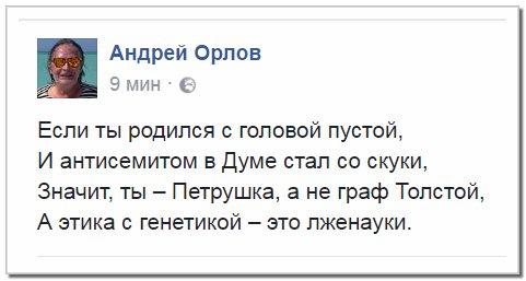 Высказывания Толстого осудили президент Федерации еврейских общин России Александр Борода и историк и журналист Николай Сванидзе.