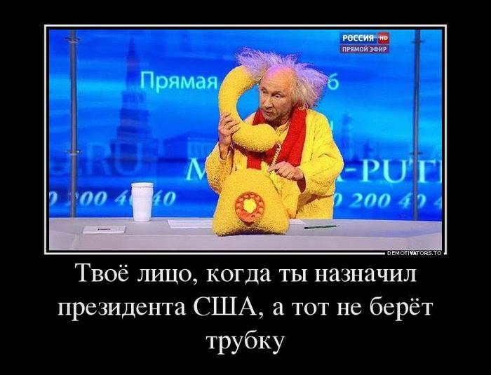 Т.е. вся российская пропагандистская машина (СМИ, печатные издания, социальные сети) перешли в режим массированной протрамповской пропаганды. Причем с явным персонифицированным оттенком, т.е. пропаганда по-прежнему не утверждает что США "стали хорошими", а нахваливает непосредственно личность самого Трампа.