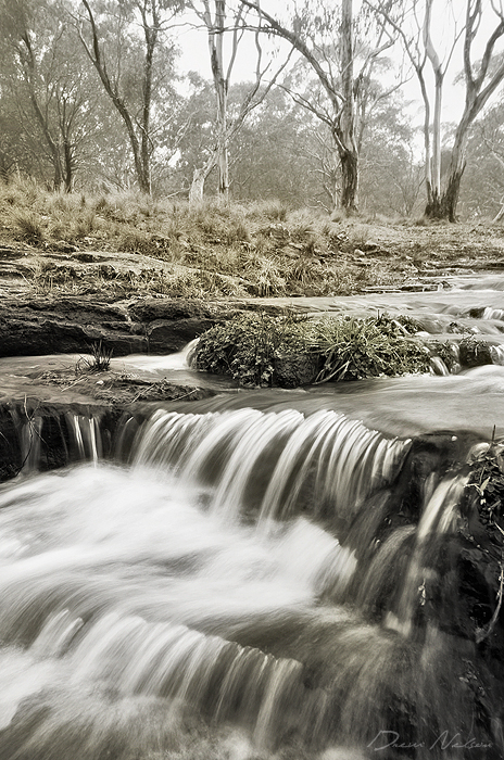 Здесь мир, казалось, был охвачен пламенем, когда я увидел впервые Мелдрам-Крик. С холма, где я пока находился в безопасности, было слышно, как пожар движется с севера в сторону ручья. Огонь легко перепрыгнул русло ручья и метнулся к соседним зарослям. Через какие-нибудь пять минут поляна превратилась в черное дымящееся пепелище. Невольно мелькнула мысль: Умирает ручей, умирают деревья, умирает весь этот край.
