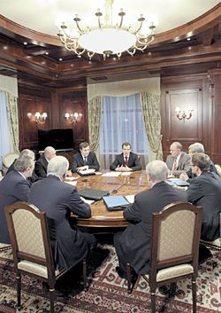 «Я готовлю Послание президента Федеральному собранию. Буду освещать, как принято обычно, разные вопросы – социальные, экономические и внешнеполитические. Хотел бы узнать мнение руководителей фракций о том, что вы считаете сегодня высшим приоритетом для развития нашей страны», – не стал скрывать своих ожиданий Медведев. «Какие акценты для вас являются наиболее важными?» – поинтересовался он.