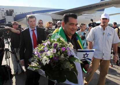 Счастливчика встречали прямо у трапа самолета министр туризма Израиля Стас Мисежников, представители администрации аэропорта и различных туристических компаний.