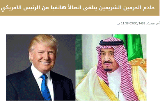 В заявлении Белого дома сообщается о том, что между королем Саудовской Аравии Сальманом Бин Абдель Азизом и президентом США Дональдом Трампом состоялся телефонный разговор, в ходе которого они обсудили целый ряд вопросов.