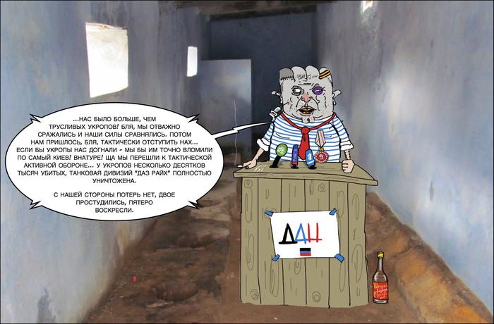 На самом деле у них получается все более чем блестяще. Они действуют стратегически. В то время, как мы выигрывали у них тактические бои под Славянском, они стратегически выиграли ситуацию. Т. е. сколько бы мы ни сбили их вертолетов, самолетов, сколько бы ни подбили танков, стратегически мы проиграли. В итоге, извините, мы не под Киевом, а они под Донецком. Это говорит о том, что стратегически операцию в Новороссии мы практически проиграли", - сказал Гиркин.