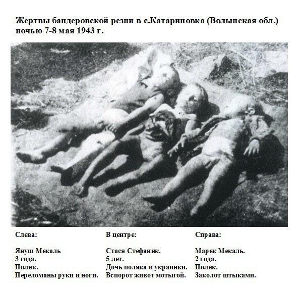 Транспарант с надписью в переводе на польский: "Дорога к независимой Украине". А на каждом дереве по обе стороны дороги палачи создавали из польских детей так называемые "венки"...