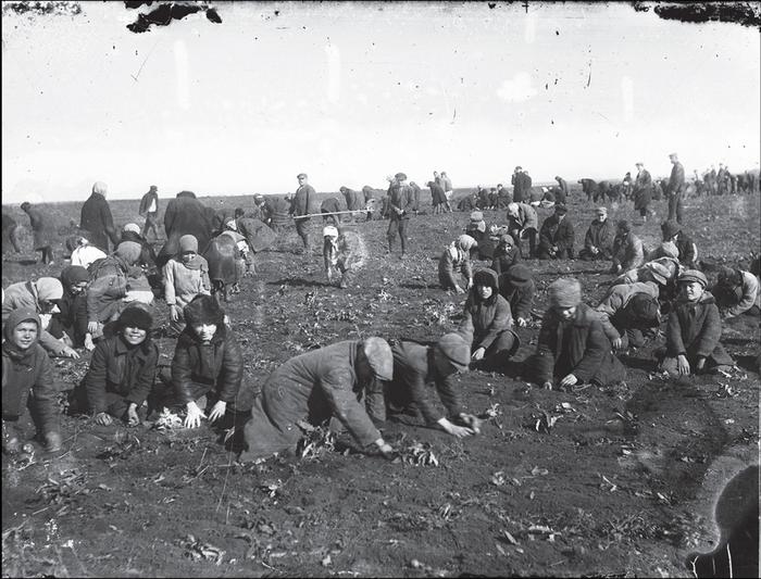 Дети на колхозном поле собирают картошку, с. Удачное, Донецкая область, 1933 год.