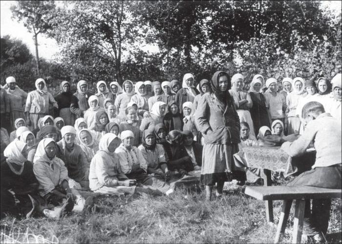Товарищеский суд над симулянткой в колхозе. Украина, Киевская обл. 1933