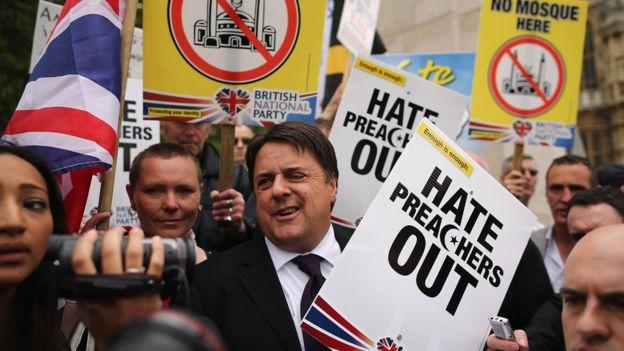 Image captionНа родине партия Ника Гриффина тоже выступает против мусульман