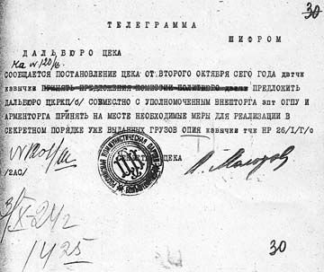 «Предложить ДАЛЬБЮРО ЦКРКП(б) совместно с уполномоченным Внешторга, ОГПУ и Арменторга принять на месте необходимые меры для реализации в секретном порядке уже выданных грузов опия».