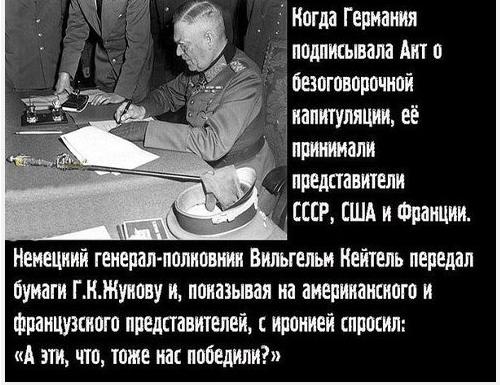 Безусловно, никто не отрицает помощи союзников и то, что они спасли жизни сотни тысяч граждан СССР, в войне и за это Россия им благодарна. Но и говорить о том, что без этого Советский Союз не смог бы победить, тоже наивно, именно потому, что союзники промедлили с помощью. Открыли бы второй фронт раньше, Гитлера и под Москвой, не было. И вообще он бы и в Австрию с Польшей не полез, если бы союзники не стравливали немцев с Советами.