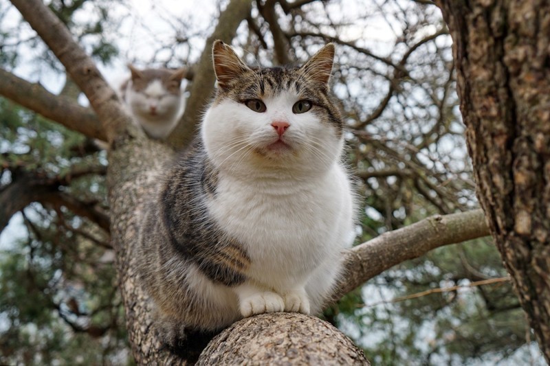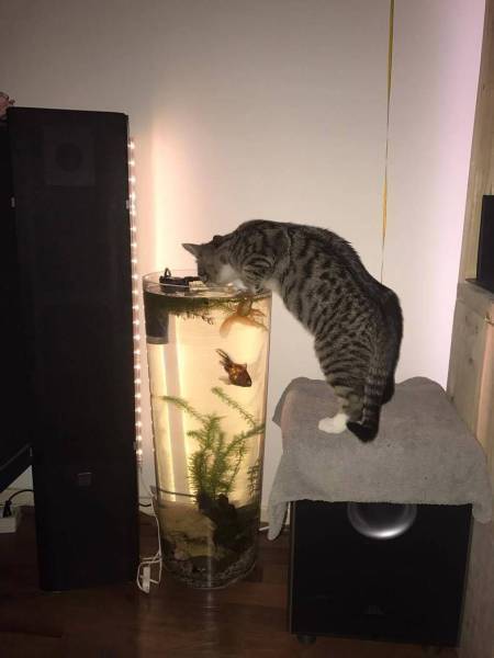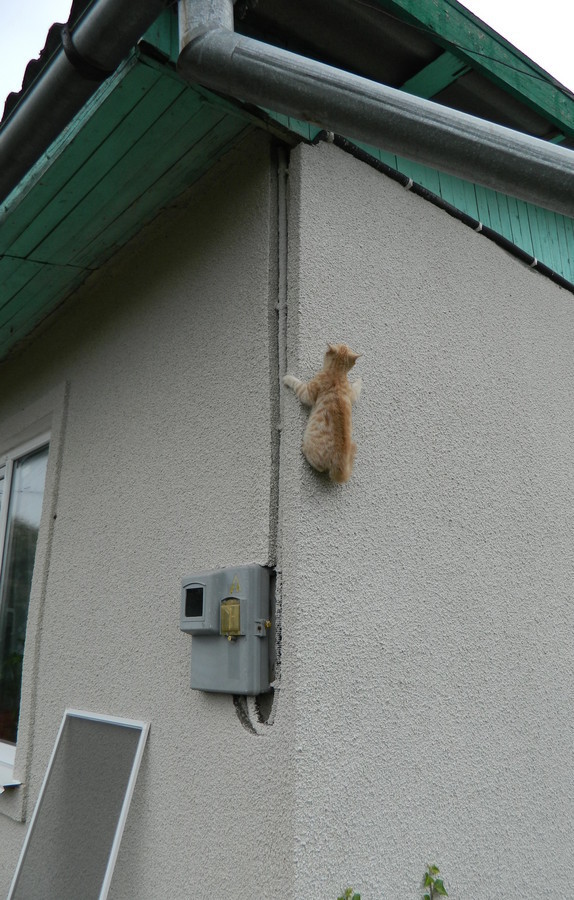 Так увлеченно смотрит. Такая поза. Лапа правая не сорвалась бы и хвост напряжен.