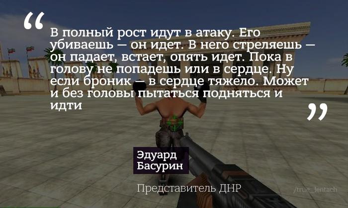 Да и сильная пропаганда действует плюс психотропные препараты. Ведь истории про киборгов — это не сказки. Мы сначала столкнулись с таблетками. А потом в аэропорту обнаружили баклажки с надписью «живая вода». Отправили в лабораторию. Это было сильнейшее психотропное средство, полностью отключающее чувство боли и страха. Человек под воздействием такого средства не падает от выстрелов. Можно всю обойму выпустить, а он идет на тебя. И вот эти случаи и сейчас отмечали, на Промке, на юге. В полный рост идут в атаку. Его убиваешь — он идет. В него стреляешь — он падает, встает, опять идет. Пока в голову не попадешь или в сердце. Ну если броник — в сердце тяжело. В голову. Может и без головы пытаться подняться и идти. Позже выяснили, что оно действует ровно 10 дней. И Украина всегда очень настойчиво требовала, чтобы ротация проходила раз в 10 дней.