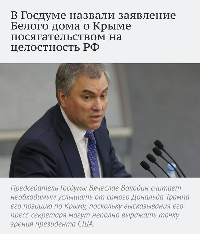 Спикер Госдумы Вячеслав Володин запретил депутатам обсуждать заявление Белого дома США о принадлежности Крыма