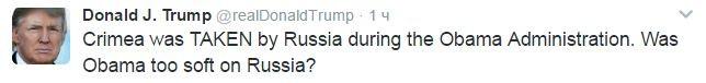 Сегодня, 15 февраля, в официальном твиттере Дональда Трапа появился пост, в котором говорится, что Обама был слишком мягок по отношению к России, раз при его правлении Россия забрала Крым. Пост Трампа о России вызвал очень бурную реакцию пользователей. Несмотря на то, что он решил "показать зубы" России, его высказывание восприняли достаточно негативно.