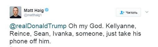 О, Господи. Келлиэнн, Райнс, Шон, Иванка, кто-нибудь, просто отберите у него телефон.