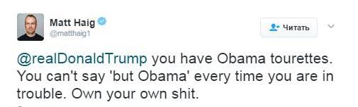 "Обама обозначает свою позицию и не держит обещания. Иран, Северная Корея и Россия испытывают Трампа из-за Обамы".
