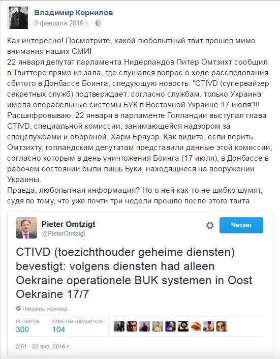 В отличие от официального следствия, ведущегося в Голландии, группа Bellingcat прямо называет по имени этого человека, известного под псевдонимом Хмурый, а также позывными "Зубр" и "Бизон".