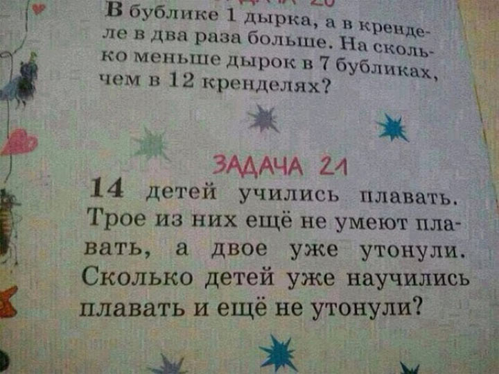 Учительниыа --"Летят два крокодила. Один красный, другой тоже в Африку. ... сколько мне лет..?