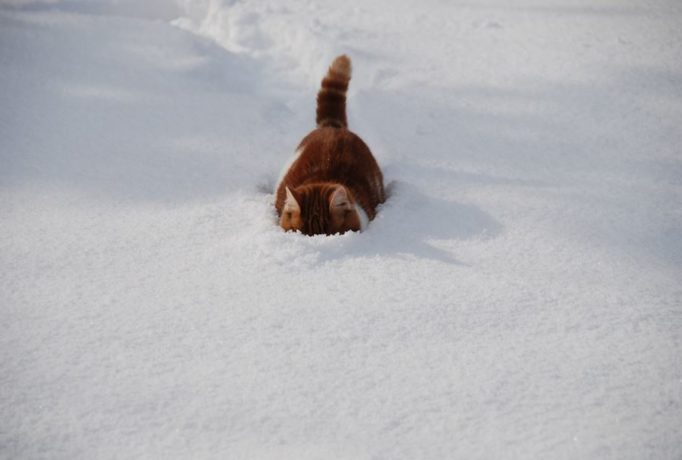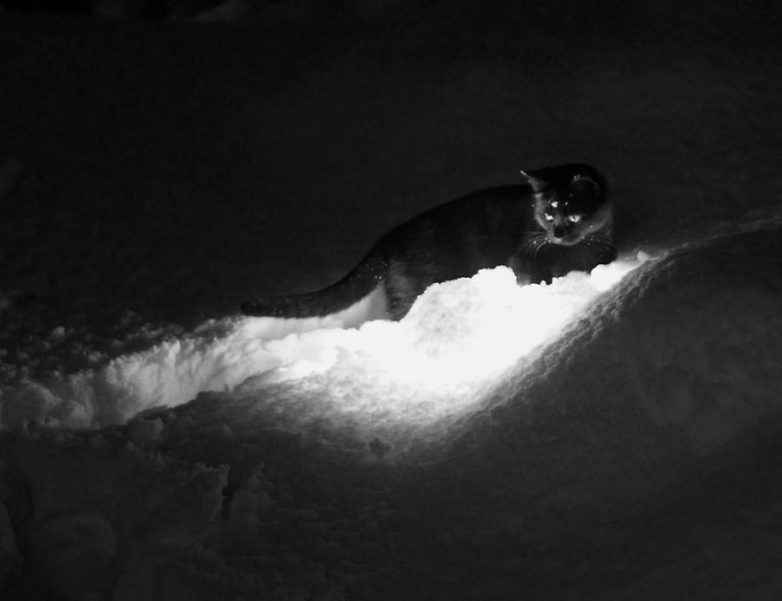 Ни в коем случае не допускайте, чтобы домашняя кошка в снегу оставалась на ночь.