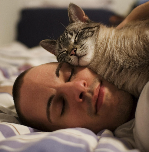 Моя Белочка тоже любит лежать на мне, только не на лице, а на шее, прям, мерзавка, устраивается на кадыке.