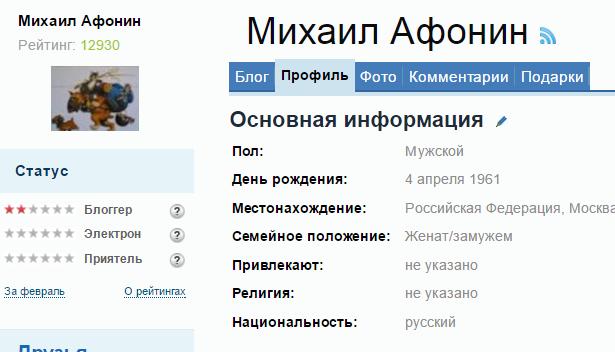 Второе: У меня нет времени лазить по "профилям". Я не сыщик.