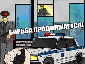 Агентство новостей «Доступ» сообщает, что на переднем плане неизвестный автор изобразил человеческие руки, одна из которых держит пистолет, а другая – гранату. В центре был нарисован человек в солнечных очках с автоматом наперевес, одетый в форму, аналогичную той, что носят сотрудники правоохранительных органов, находящиеся при исполнении служебных обязанностей. Рядом с ним располагался легковой автомобиль белого цвета с синей полосой на боковой части кузова и надписью «МИЛИЦИЯ». Над «легковушкой» была помещена фраза «БОРЬБА ПРОДОЛЖАЕТСЯ!», на заднем плане – помещение с забрызганными кровью стенами и окнами, в которых можно было разглядеть еще двоих человек в «форме».