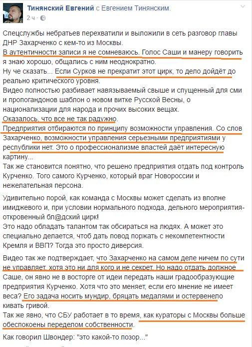 Истерика ЗАХАРЧЕНКО: Путин отдает заводы Донецка КУРЧЕНКО. Прослушка СБУ.