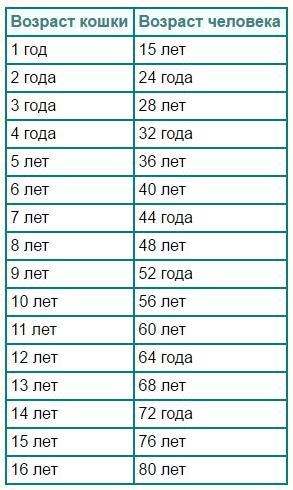 БОЛЕЕ ТОЧНЫЕ ДАННЫЕ В ТАБЛИЦЕ СООТВЕТСТВИЯ ВОЗРАСТА КОШЕК И ЛЮДЕЙ: