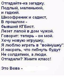 * Ваши клоуны на нашем ТВ каждый день своим бредом достают.*