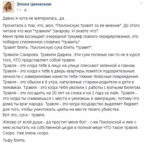 Мне, как коммунисту, конечно не нравится поклонение Натальи Поклонской, Николаю Второму, а в народе просто Николашка Кровавый. И конечно я критиковал её не раз за это, но что бы обливать её грязью, ни когда не позволю себе и другим не хочу спускать такие выходки.