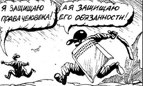 Не сметь отвечать ! Права человека ! Терпеть ! Не сметь защищаться !