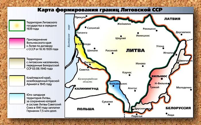Примечательно, что именно Советский Союз, символика которого теперь в Литве уголовно наказуема, сформировал страну в ее современных границах, присоединив к ней почти 20% ее нынешней территории и свыше 550 тыс. человек населения за счет виленских земель Белорусской ССР.