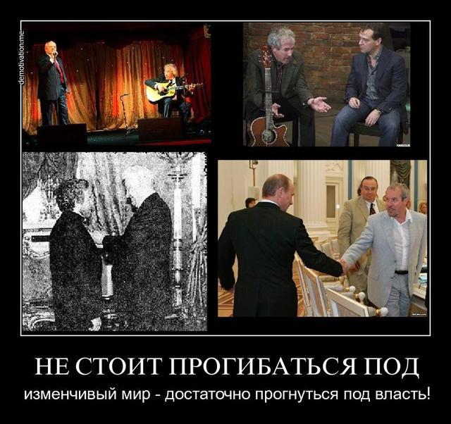 Вообще ненавидеть власть, но при этом участвовать в её проектах, пожимать ей руки и принимать из этих рук награды и деньги с довольной рожей, это видимо, какой то настолько сакральный и непостижимый вид деятельности, ставящая чёткую грань между диким русским быдлом и не дикой и не русской интеллигенцией....))))))