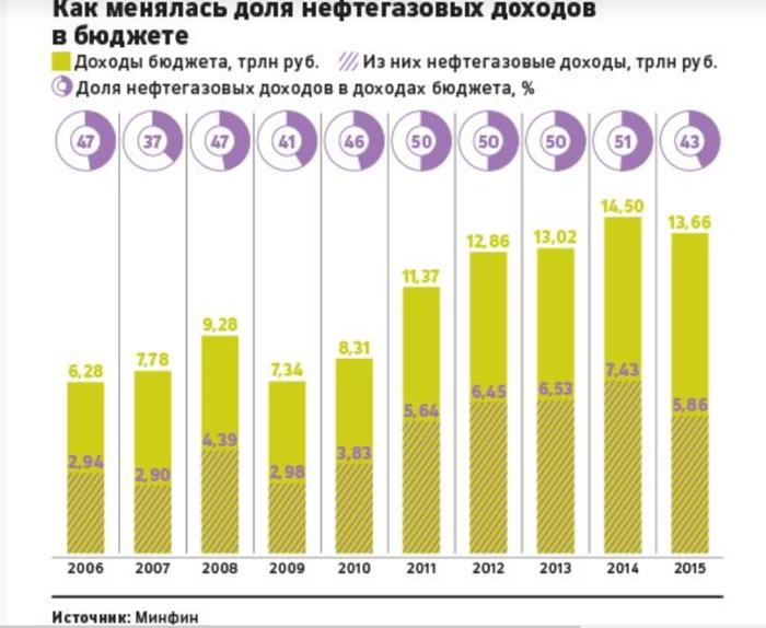 Доля нефте-газовых доходов в российском бюджете около 43%