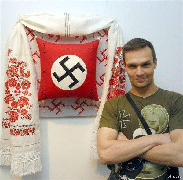 Бандеровская Украина с идолом-вождем- гомосеком,Бандерой,марширующие с кастрюлями на голове и эсэсовскими нашивками на рукавах что-то хрюкает о фашизме в России...