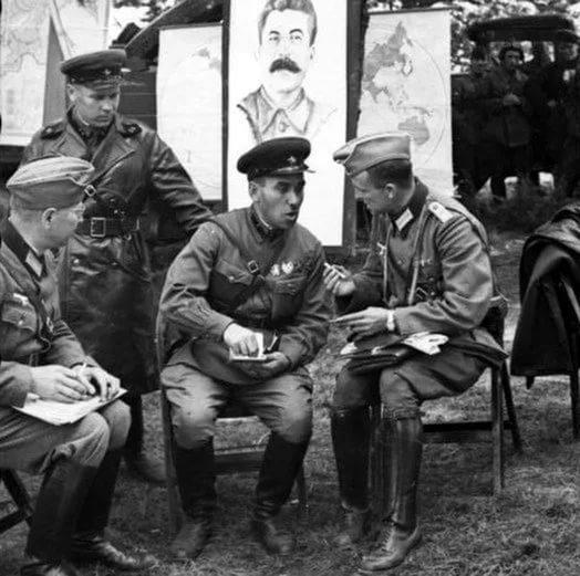 Никакого совместного парада не было, дуралей. Просто немцы устроили шоу с тонким намеком, что вернутся в Брест - все кадры "совместного" парада - монтаж, сделанный из фото снятых в разное время.