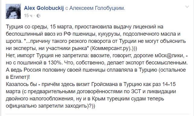 Путину и Ко надо было с самого начала ввести просто драконовские санкции против Евросоюза, а не ограничиваться жратвой типа польских яблок. И сейчас еще не поздно ввести. И не "ответные санкции", а в духе их же риторики: что санкции против ЕС вводятся из-за "многочисленных нарушений прав человека", из-за «дискриминационных практик» европейских властей, из-за того, что "ситуация с правами человека в европейских странах продолжает ухудшаться", из-за "продолжающейся милитаризации Европы". - Может, хватит строить из себя благородную девицу целку-невидимку? Этим уродам надо отвечать их же монетой.