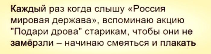 зачем русским Россия, когда есть крым, дэнэрэ, лэнэрэ, ЮО, Абхазия, сраная сирия, ещё и всех говнокорешей типа ле пэн надо подпитывать чтобы не подохли. Русские в этом списке в сотом вагоне, если вообще в этом составе. САМу насрать на нас, он свои амбиции тешит, миром хочется рулить, а приходится на заднем дворе бегать, топот за сценой изображать.