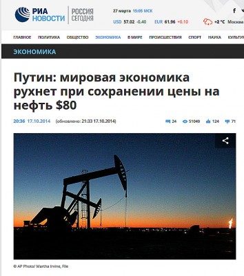 В России цена на нефть давно уже ничего не определяет.... Ни цену бензина, ни курс доллара...